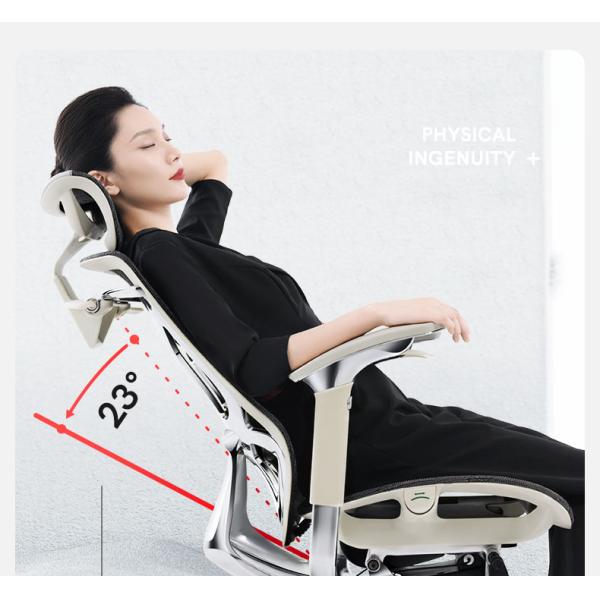 When the backrest is locked, the backrest tilt will drive the seat forward within 23 degrees to adapt different users' weight, posture, sitting habit. Users can stop at the most comfortable position without any operation.